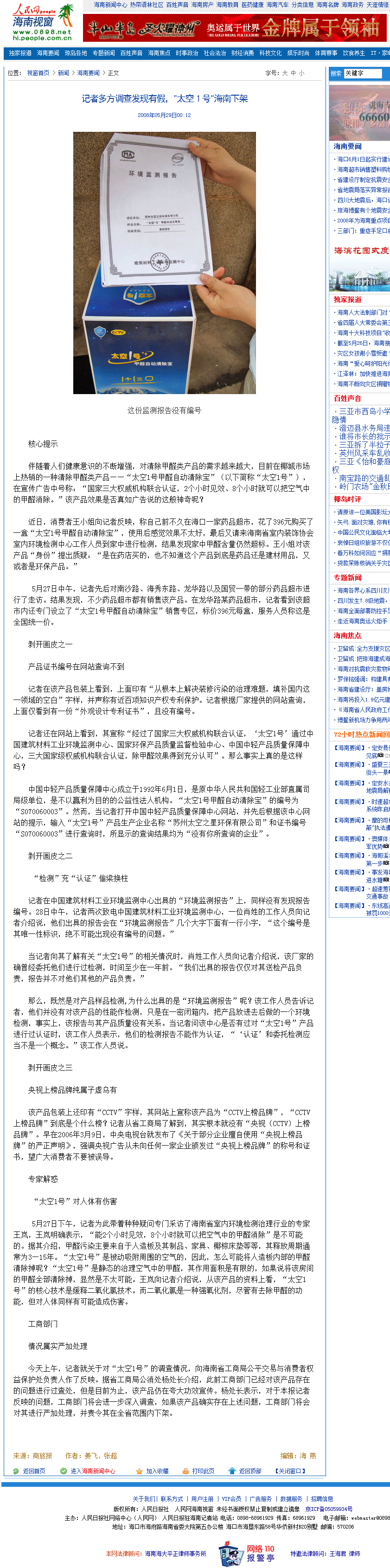 不能进行任何室内化学污染治理的几大理由: 我们从2002年开始从事室内空气检测,已经有十几年了,这十几年中我们一直留意对化学治理产品的研究。我们有责任将我们对治理产品的认识如实总结如下: ▲一、我们不推荐进行化学治理的理由: ◆1.据我们了解现国家对治理产品没有任何相关国家标准、或行业标准。请问一个没有相关标准的产品品质如何保证? ◆2.一些治理产品的成分无法确定,这种产品成分本事是否存在污染不知道。许多生产治理产品的单位均能提供贴牌生产,我们经常能接到这样的服务电话。一些治理产品说他们的产品成分是植物提取液,就像客户告诉我们说:他家贴墙纸的胶水是用糯米汤做的一样,我们对这种说法持保留意见。 ◆3.治理后是否会产生新的污染同样不知道。就像之前三鹿问题奶粉中有非法添加了三聚氰胺一样,谁能保证治理后不会有像三聚氰胺一样存在,但我们不知道的污染物? ◆4.2008年05月29日人民网报道的“记者多方调查发现有假,"太空1号"海南下架”,这篇报道不就说明了一切?从该产品的资料上看,“太空1号”的核心技术是缓释二氧化氯技术。而二氧化氯是一种强氧化剂,尽管有去除甲醛的功能,但对人体同样有可能造成伤害。